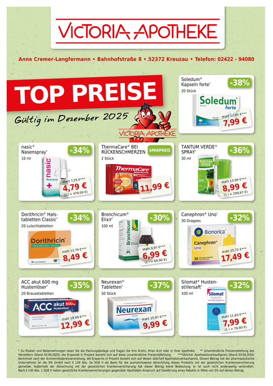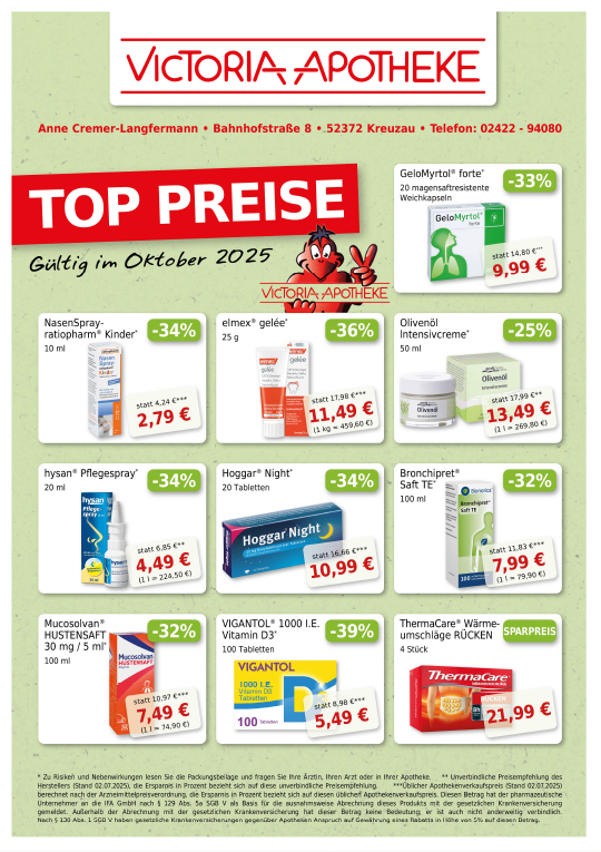 Als teilnehmende LINDA Apotheke bieten wir Ihnen jeden Monat ein zur Jahreszeit passendes Produkt aus dem rezeptfreien Sortiment an. Beim Kauf dieses Monatsproduktes erhalten Sie einen Mitgabeartikel gratis dazu.